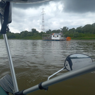 Za mostem okazało się, że miejsc na nocleg cięgle jest mnóstwo i tak naprawdę to straciłem dobre 10 km dzień wcześniej. Płynąc pamiętajcie, że za nim pójdziecie spać, znajdziecie miejsce na nocleg bez problemu i mniej zostanie Wam na kolejny dzień. Po labiryncie mielizn i drzew przyszedł czas na slalom pomiędzy barkami wydobywającymi piasek z dna. Tego też powinni albo zabronić albo unormować bo raz z jednej, raz z drugiej... Trudno wypatrzyć ślepy korytarz rur z jakiego wydostać się nie sposób. Wisła zrobiła się brzydka! Krzakudry, wąskie koryto, sztuczne nabrzeża . Ten fragment wymazuję z pamięci zupełnie.